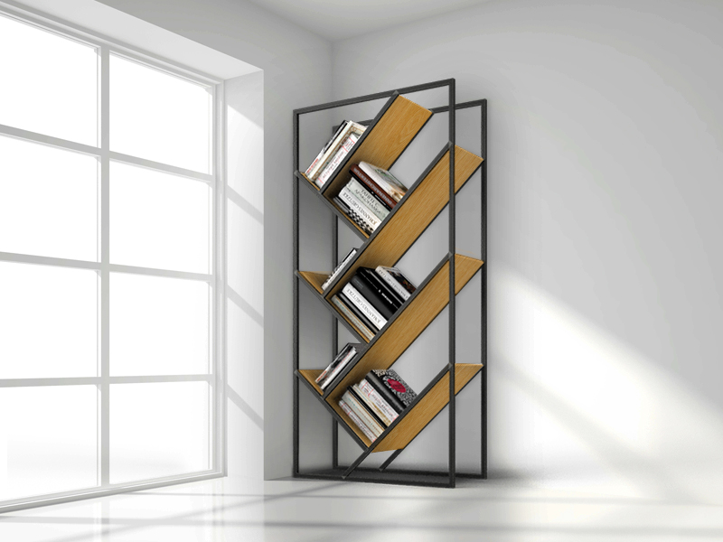 מתכת אלכסונית שחורה בשילוב עץ אלון פורניר